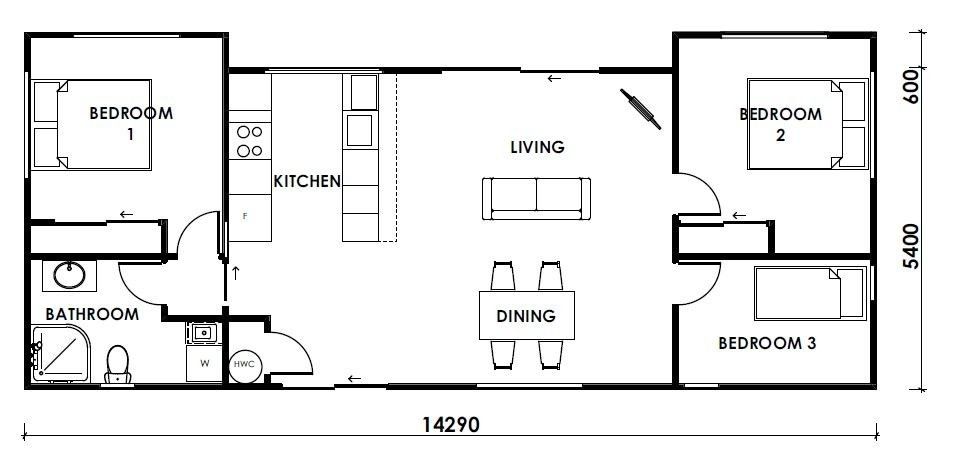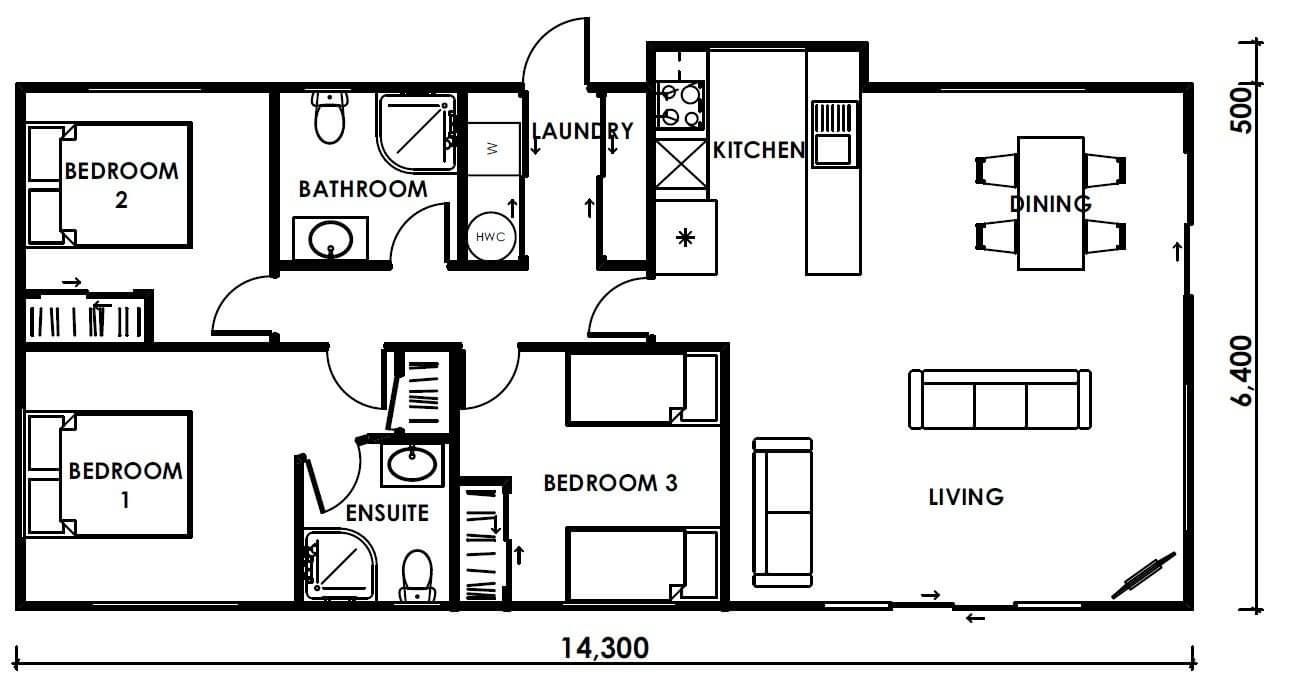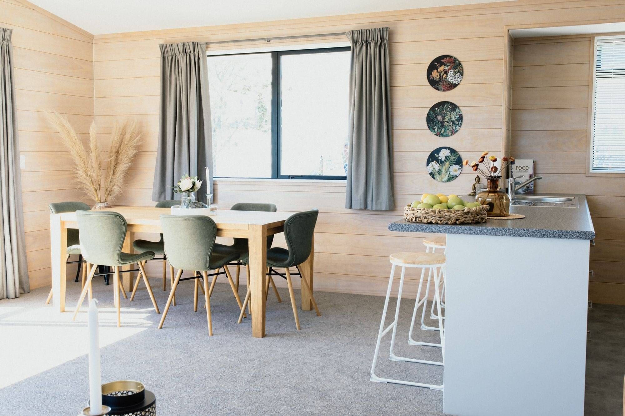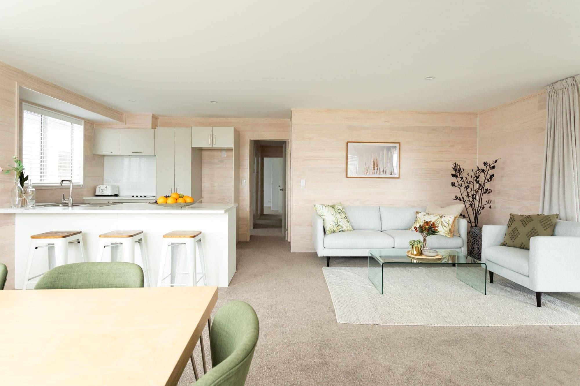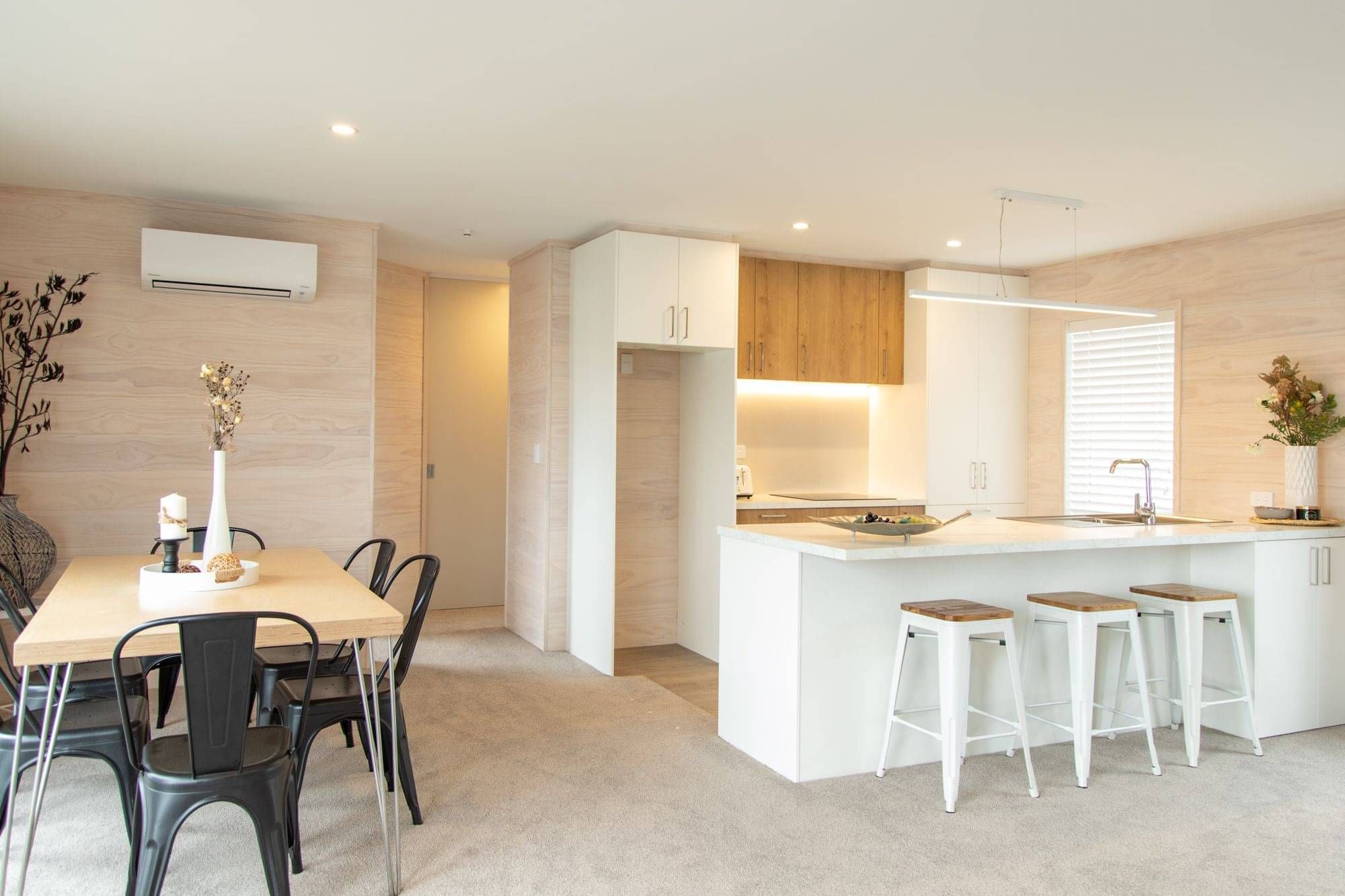 A modern, stylish house with a spacious kitchen/dining/living area in the centre, making it an entertainer's dream home.