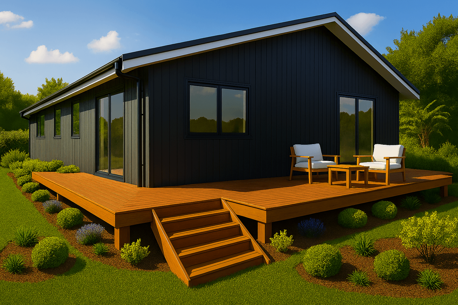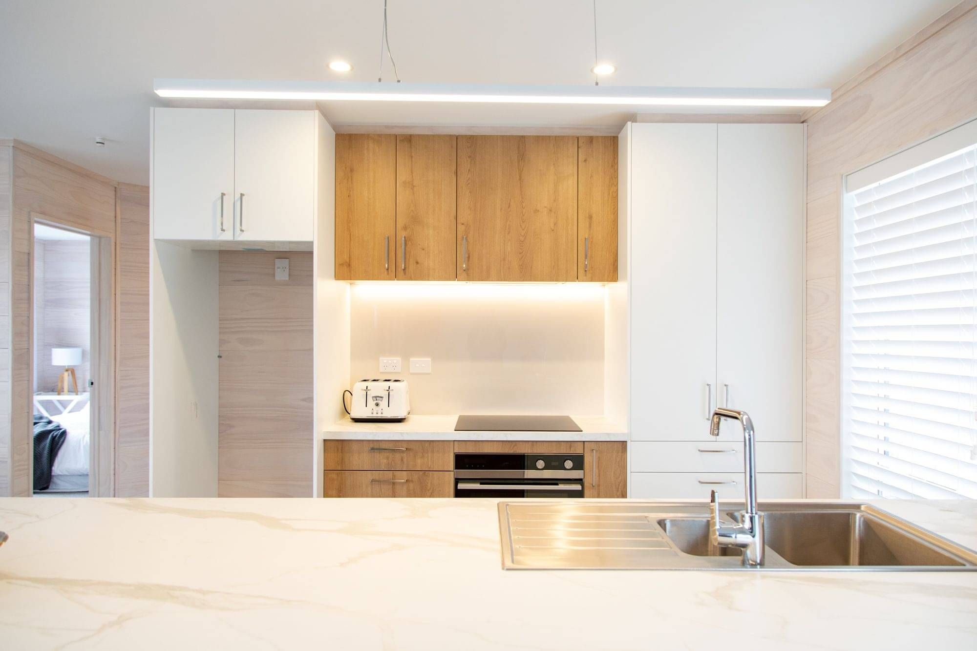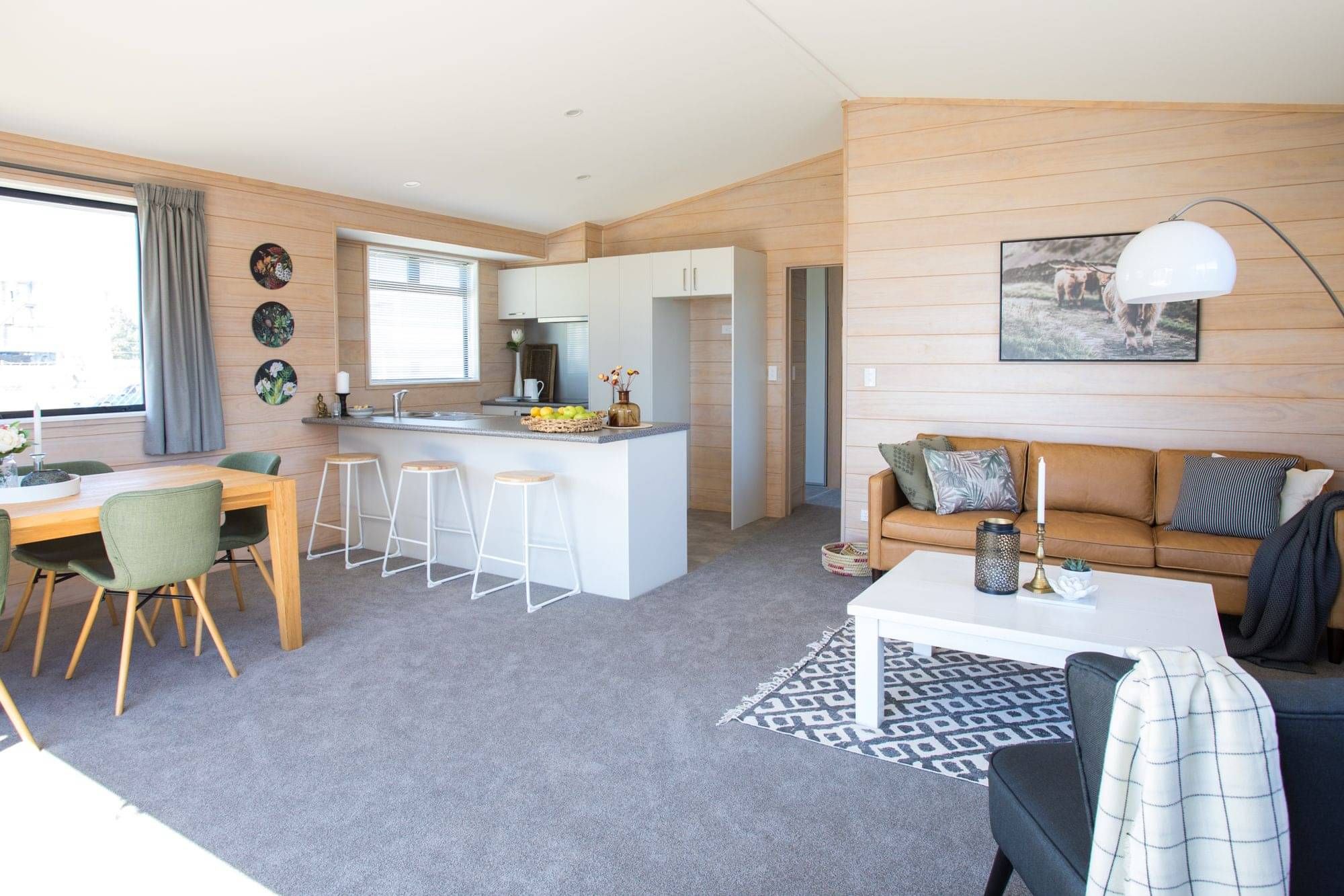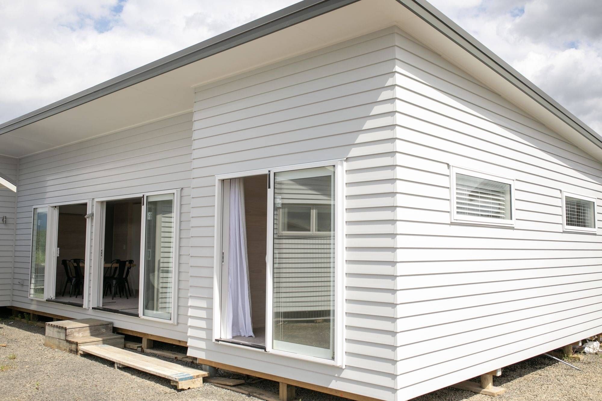 A modern, stylish house with a spacious kitchen/dining/living area in the centre, making it an entertainer's dream home.
